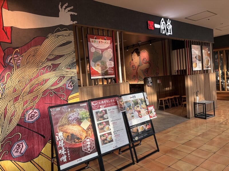 一風堂は「女性が一人でも入りやすいラーメン店」の先駆け的存在であり、モザイクモール港北店も清潔感あふれる明るい店構えが特徴です。