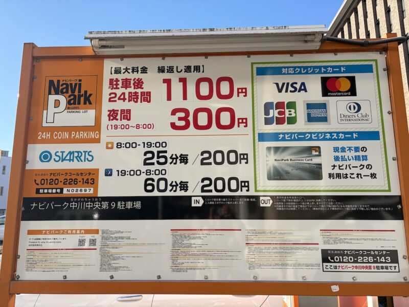 ナビパーク中川中央第9駐車場の営業時間やアクセスなどの基本情報は以下の通りです。