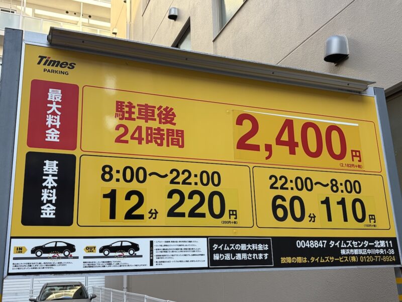 | 最大料金 | 駐車後24時間 最大 2,400円 ※繰り返し適用されます。 |